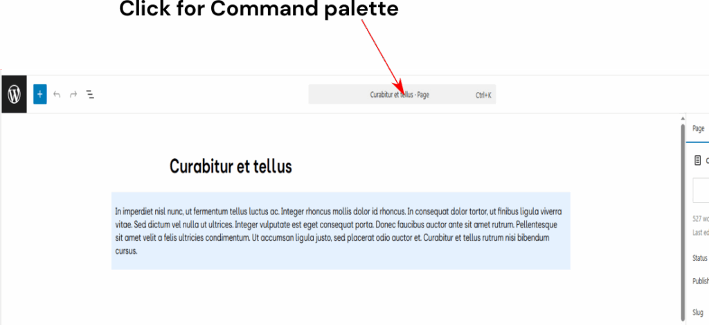 - When editing a page or post, click on the title, as shown below: