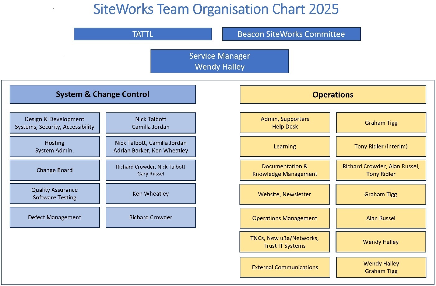 We have a Beacon SiteWorks Committee chaired (interim) by Tony Ridler that reports to TATTL. The Team leads meet fortnightly.